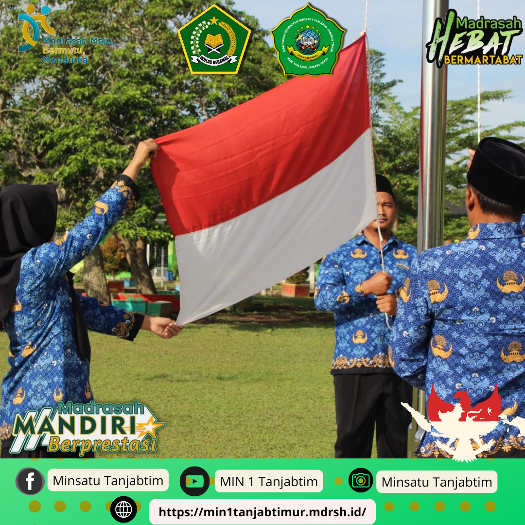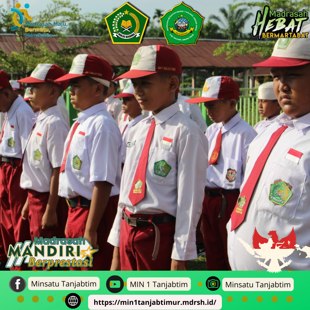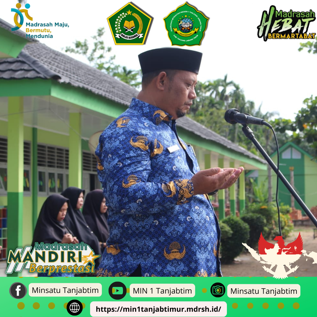 Rantau Rasau, MIN 1 Tanjab Timur - Bangsa yang besar ialah bangsa yang mengenang sejarah, itulah kata kata pembuka Kepala Madrasah Ibtidayah Negeri (MIN ) 1 Tanjab Timur Aziz, S.Pd saat didaulat sebagai pembina upacara memperingati hari kesaktian pancasila yang digelar di halaman MIN 1 Tanjab Timur Selasa (1/10/2024) pagi.