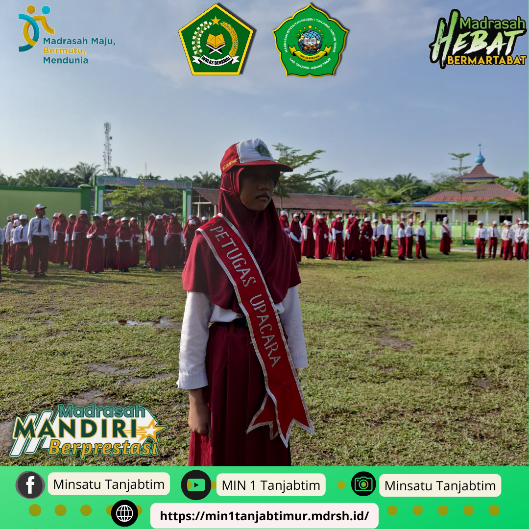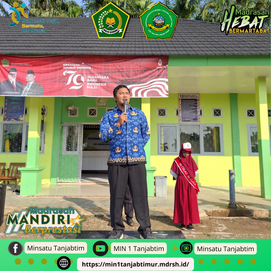 Dalam amanat upacara Soleh berpesan agar siswa siswi MIN 1 Tanjab Timur menggantungkan cita cita seting tingginya dan terus bersemangat dalam menggapai cita cita.