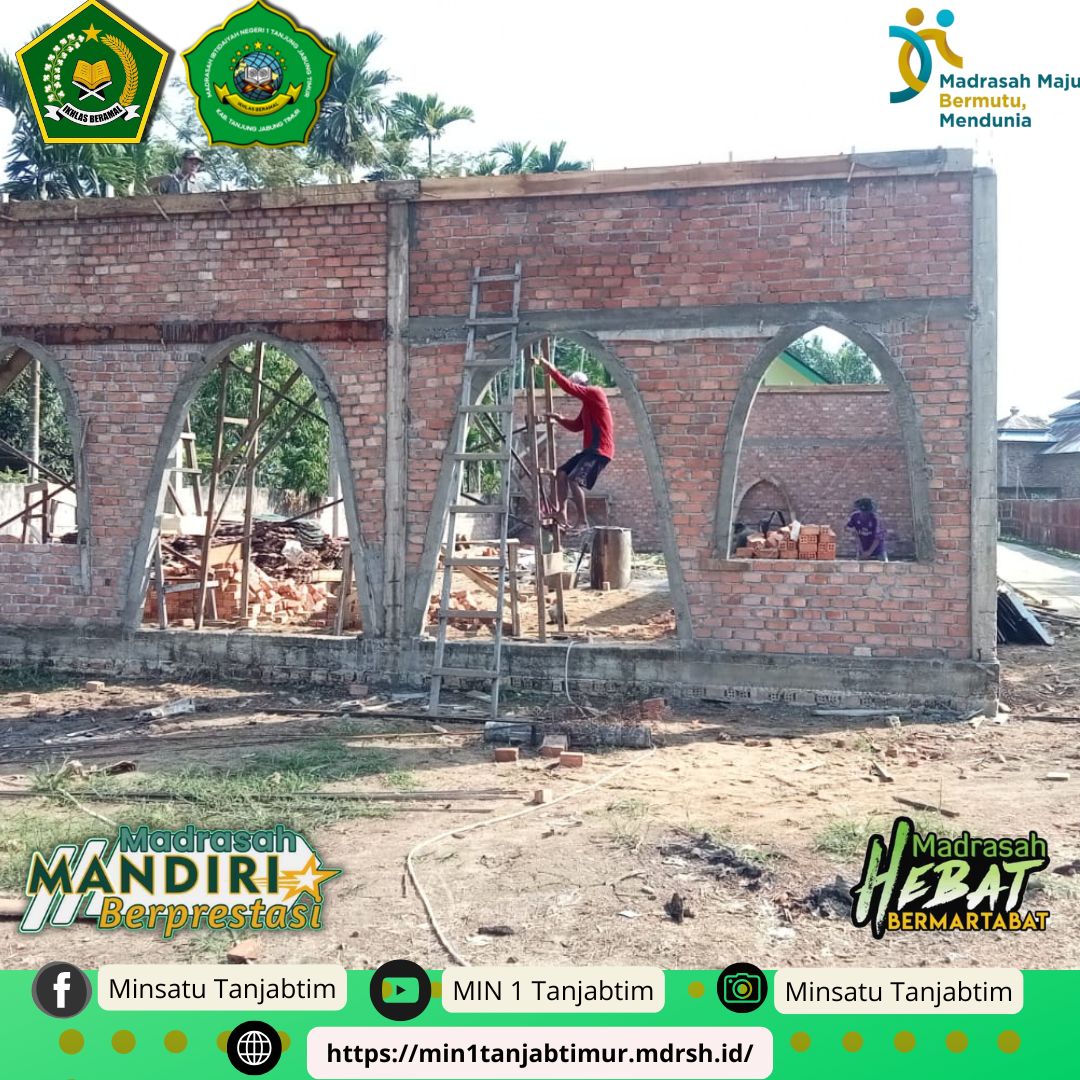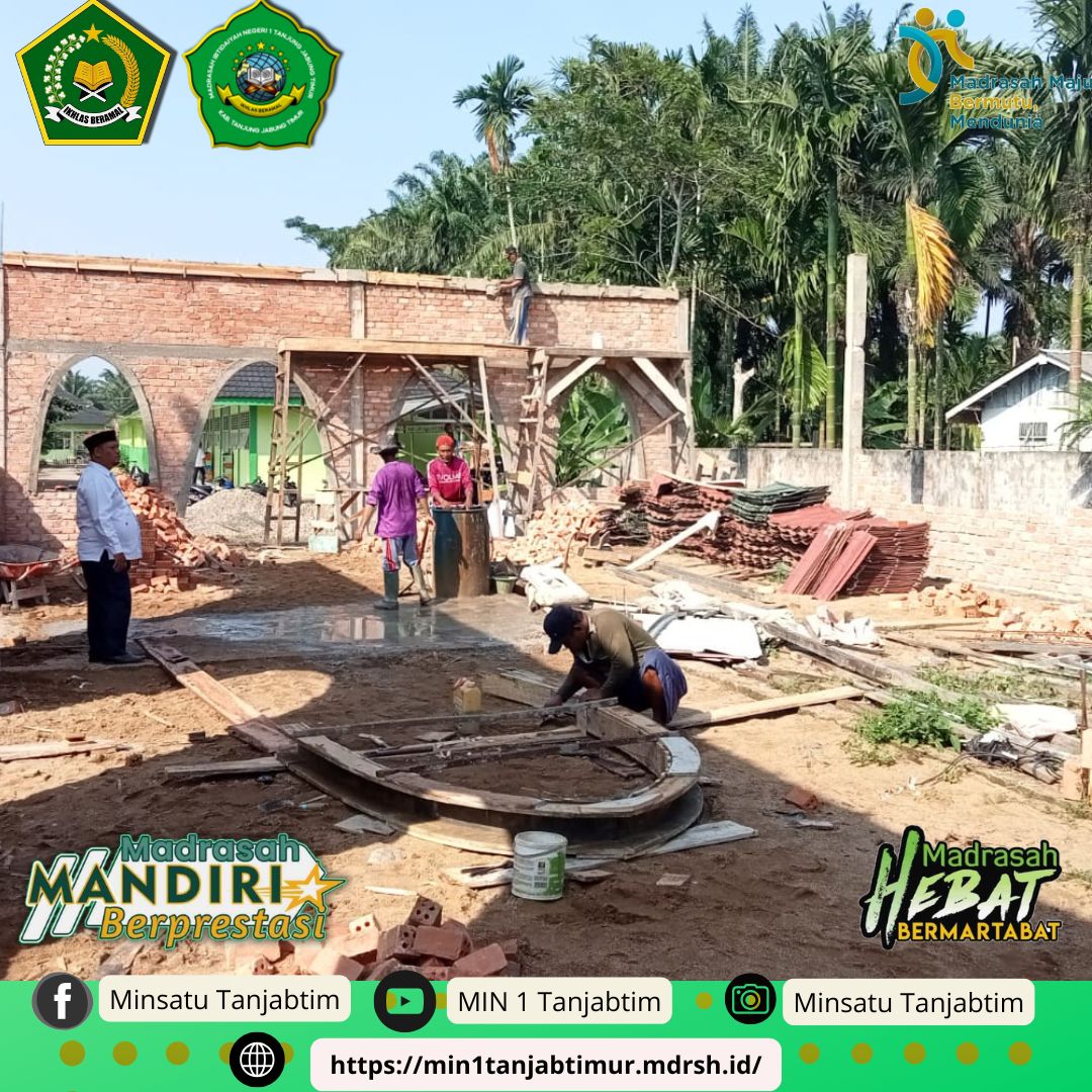 Rantau Rasau,MIN 1 Tanjab Timur - Pembangunan Aula Seba Guna Madrasah Ibtidayah Negeri (MIN) 1 Tanjab Timur sudah mencapai 70 persen. Dengan adanya gedung serba guna diharapkan mampu menunjang fasilitas madrasah dalam melaksanakan kegiatan formal seperti rapat, pentas seni dan kegiatan madrasah lainnya.