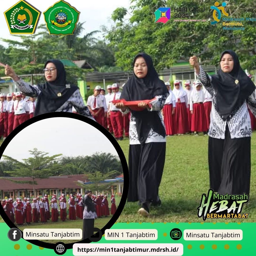 Untuk diketahui pada upacara HGN di MIN 1 Tanjab Timur berjalan dengan khidmat, dimana pada upacara tersebut juga dinyanyikan lagu "Terima Kasih Guruku" dan "Himne Guru".