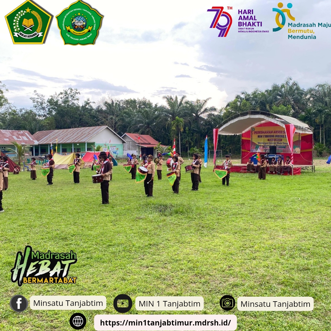 Dengan menggunakan atribut pramuka lengkap, siswa siswi MIN 1 Tanjab Timur menampilkan formasi yang epik dan kerjasama yang baik, sehingga penampilan drumband MIN 1 Tanjab Timur menerima tepuk tangan yang meriah.