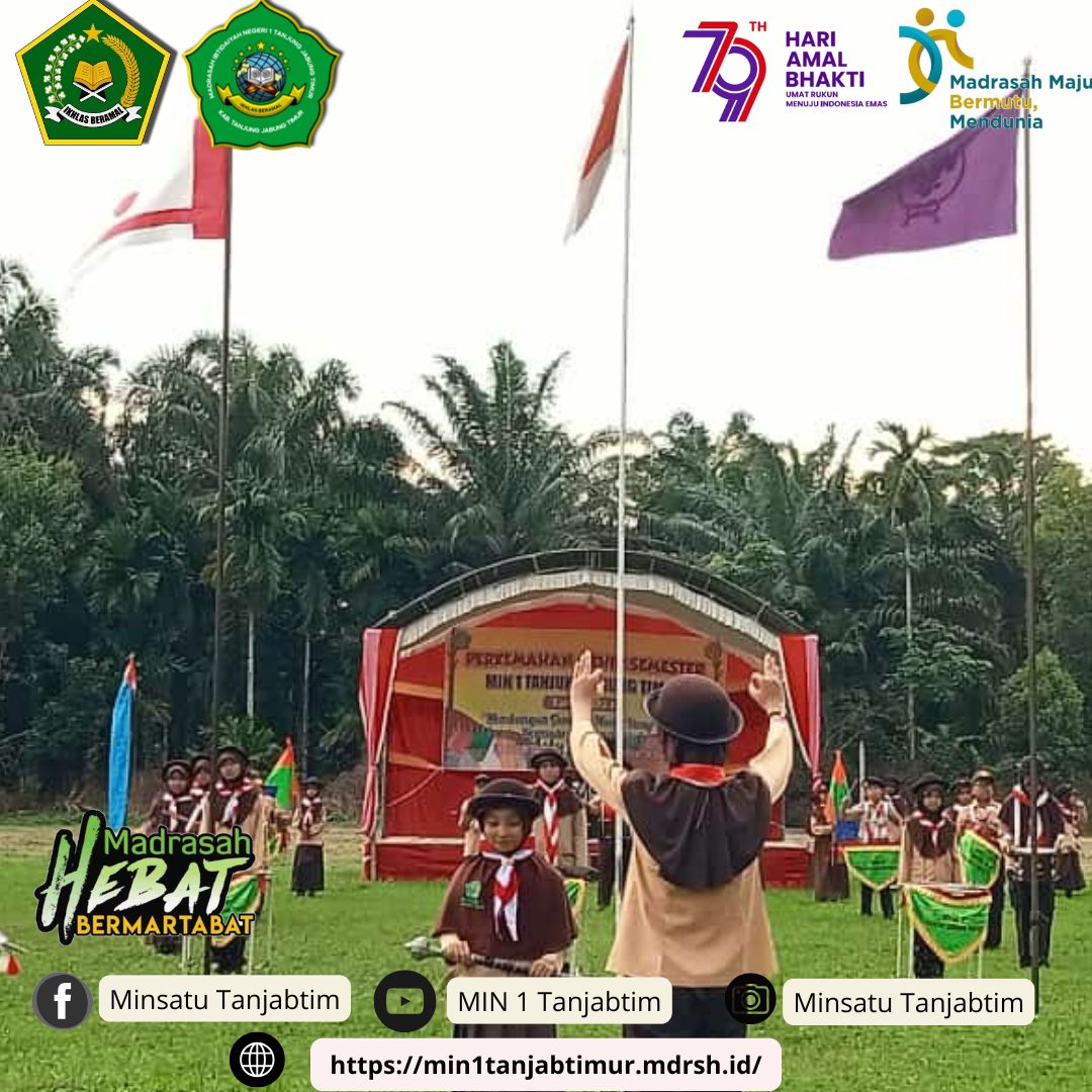 Rantau Rasau, MIN 1 Tanjab Timur - Group drumband gita pesona Madrasah Ibtidayah Negeri (MIN) 1 Tanjab Timur tampil memukai pada upacara pembukan perkemahan akhir semester 2024 Madrasah Ibtidayah Negeri (MIN) 1 Tanjab Timur, Selasa (17/12/202) kemarin.