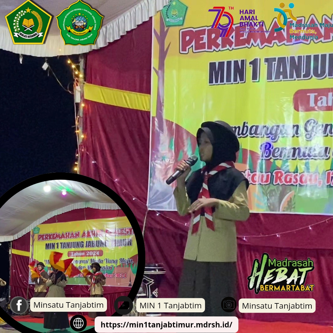 Rantau Rasau, MIN 1 Tanjab Timur - Bertempat di Bumi Perkemahan MAdrasah Ibtidayah Negeri (MIN) 1 Tanjab Timur, Rabu (18/12/2024) malam digelar Pentas Seni (Pensi) sebagai salah satu acara pamungkas menuju malam puncak Perkemahan Akhir Semester 2024 MIN 1 Tanjab Timur.