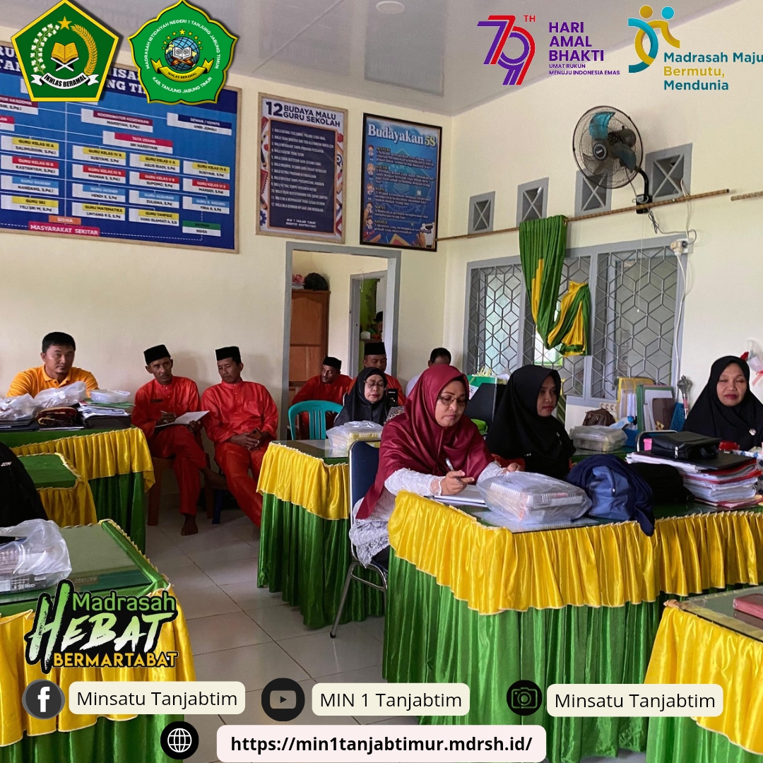 Rantau Rasau,MIN 1 Tanjab Timur - Bertempat di ruang Majelis Guru pada Senin (6/1/2025) Madrasah Ibtidayah Negeri (MIN) 1 Tanjab Timur, menggelar rapat perdana di semester genap tahun ajaran 2024-2025. Dimana pada rapat tersebut dibahas terkait pembagian tugas.