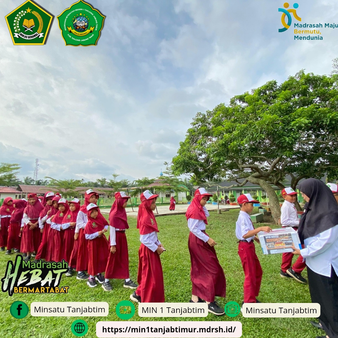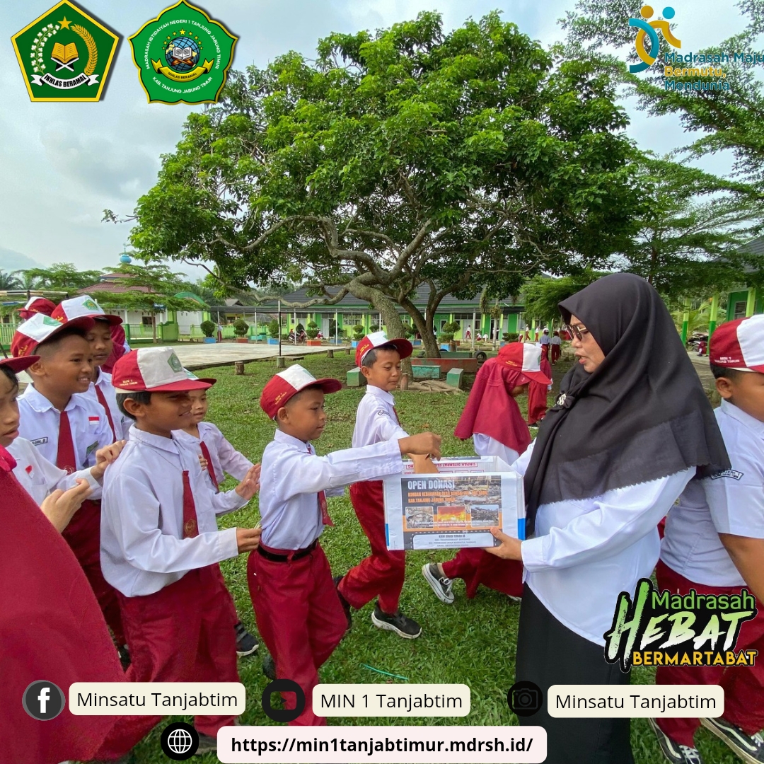 Rantau Rasau,MIN 1 Tanjab Timur - Usai pelaksanaan upacara bendera Senin (3/2/2025) majelis guru dan siswa siswi Madrasah Ibtidayah Negeri (MIN) 1 Tanjab Timur melakukan aksi sosial berupa mengumpulkan donasi untuk korban kebakaran di Sungai Itik Kecamatan Sadu.