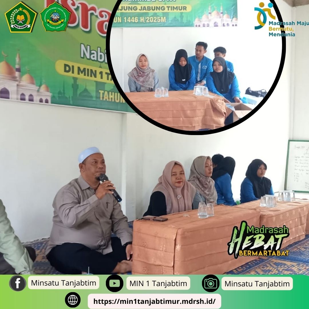 Rantau Rasau, MIN 1 Tanjab Timur - Jumat (14/2/2025)Â Madrasah Ibtidayah Negeri (MIN) 1 Tanjab Timur menyambut kedatangan Kepala Sekolah Menengah Pertama Negeri (SMPN) 9 Tanjab Timur, Siti Masitah beserta rombongan Organisasi Intra Sekolah (OSIS) SMPN 9 Tanjab Timur, dalam rangka sosialisasi Pendaftaran Peserta Didik Baru (PPDB).