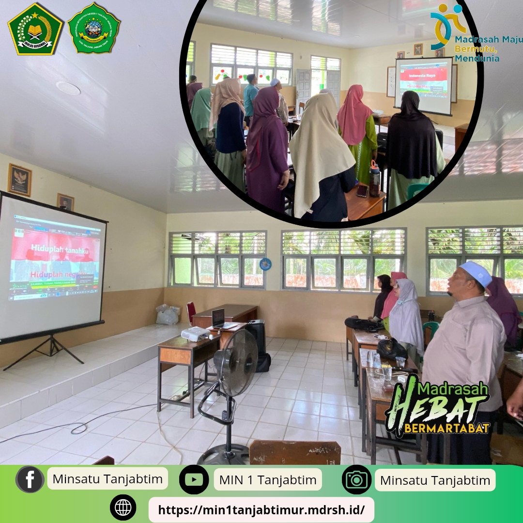 Rantau Rasau, MIN 1 Tanjab Timur - Bertempat di salah satu ruang kelas, Majelis Guru Madrasah Ibtidayah Negeri (MIN) 1 Tanjab Timur mengikuti webinar dengan Kepala Kantor Wilayah (Kanwil) Kementrian Agama Provinsi Jambi yang diadakan pada Jumat (14/2/2025) siang, sekira pukul 14.00 Wib hingga 16.00 Wib.