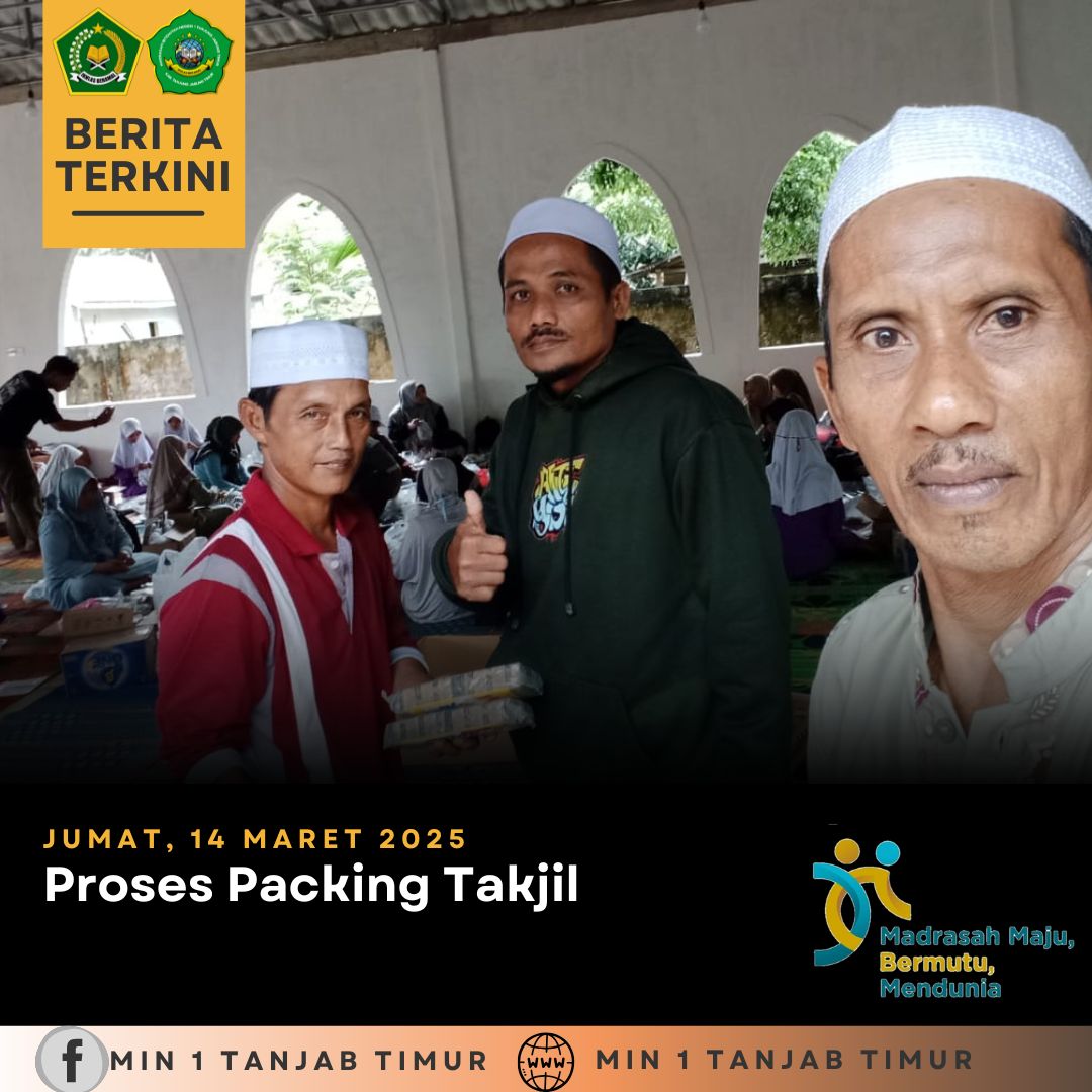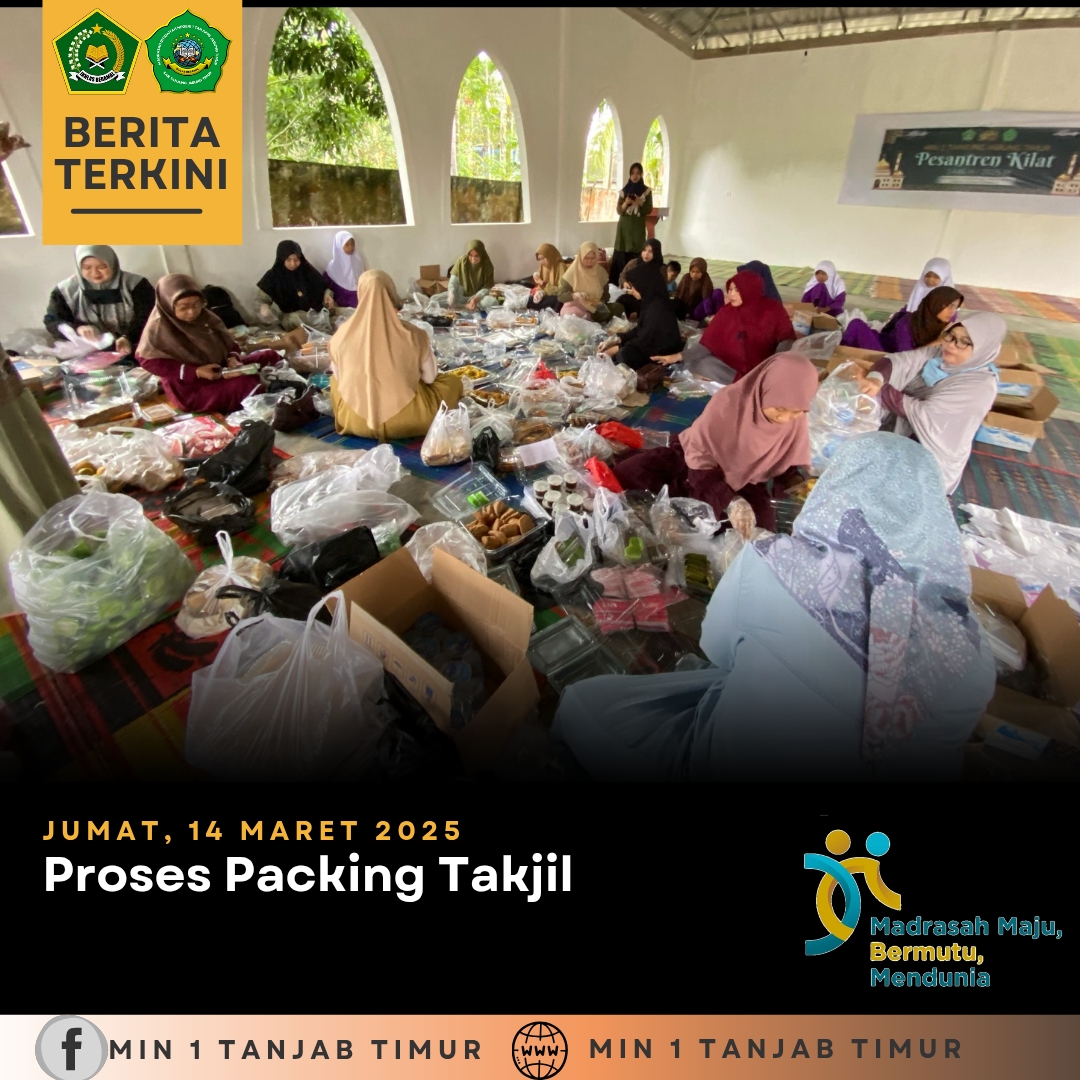 "Alhamdulillah proses pengemasan yang dimulai dari pukul 14.00 WIB selesai di pukul 16.00 WIB. Dimana proses pengemasannya dilakukan oleh majelis guru serta siswa siswi kelas VI. Dan dari hasil sumbangan orang tua wali siswa siswi MIN 1 Tanjab Timur ini diperoleh 834 pc kue takjil siap untuk dibagikan. Semoga kegiatan berbagi takjil nanti bisa berjalan dengan lancar dan baik," tandasnya.