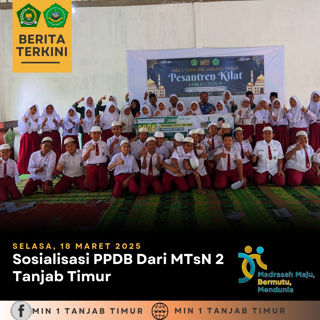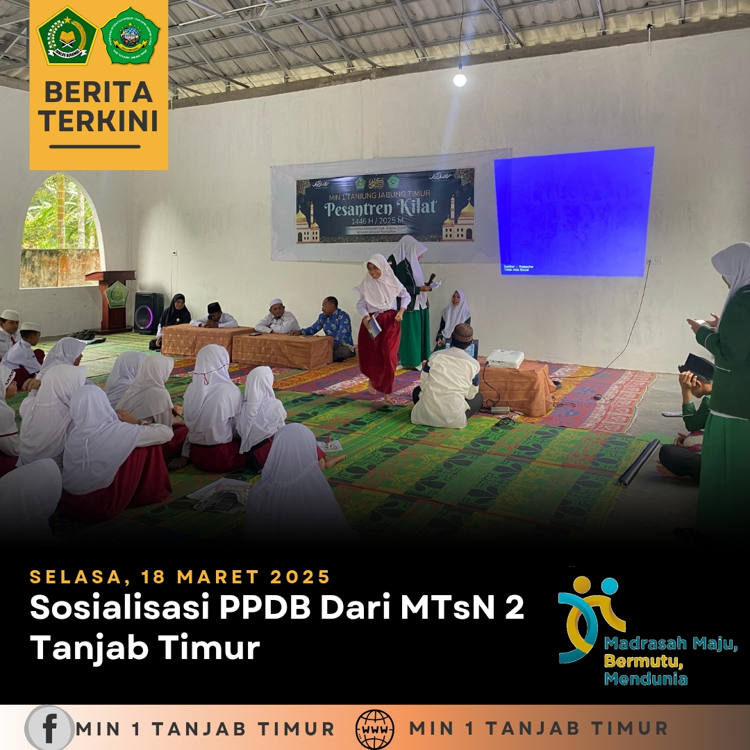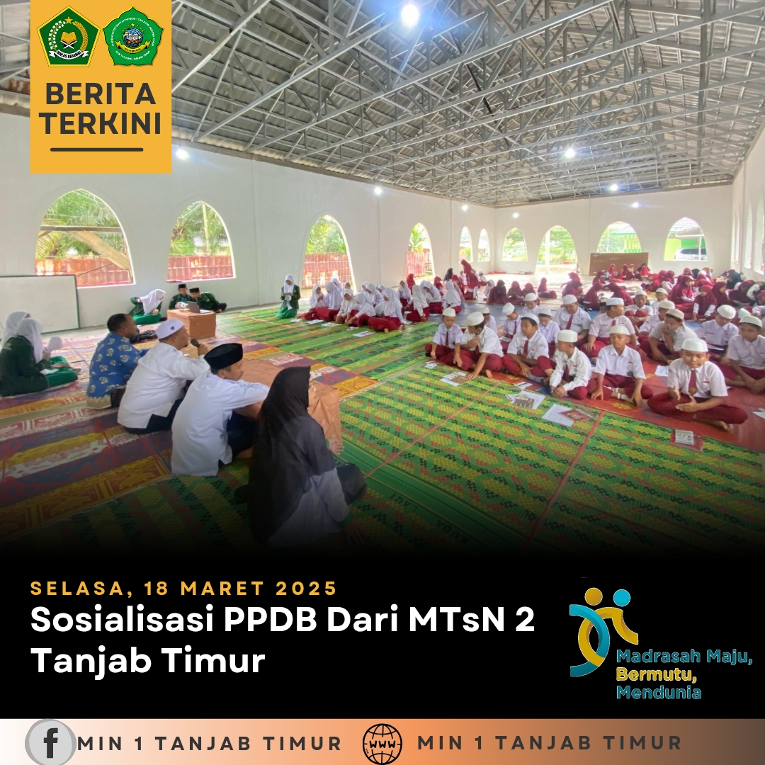 Untuk diketahui dalam kegiatan sosialisasi yang dipusatkan di aila serba guna MIN 1 Tanjab Timur tersebut, Organisasi Siswa Intra Madrasah (OSIM) MTsN 2 Tanjab Timur juga mengadakan kgiatan kuit tanya jawab yang disambut antusias oleh siswa siswi MIN 1 Tanjab Timur.