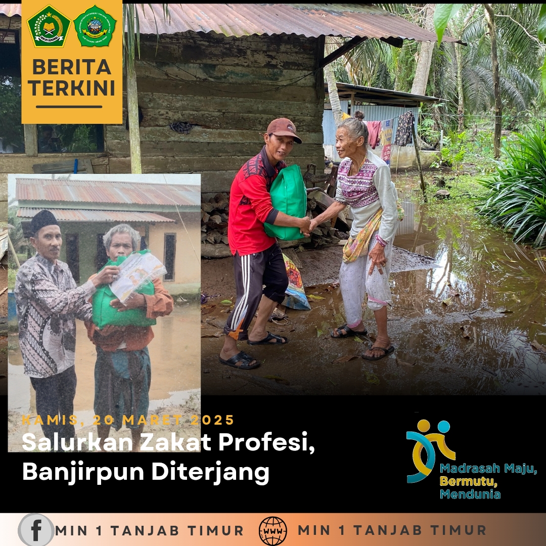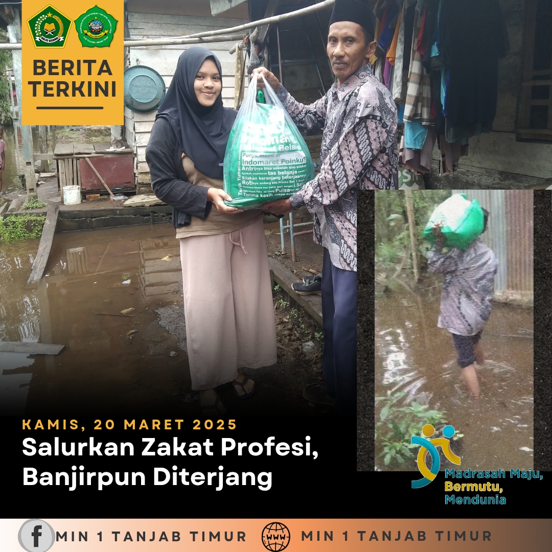 Rantau Rasau, MIN 1 Tanjab Timur - Jalan becek nan penuh lumpur dan licin, serta banjir diterjang oleh majelis guru Madrasah Ibtidayah Negeri ( MIN ) 1 Tanjab Timur guna menyalurkan bantuan zakat profesi pada Kamis (20/3/2025).