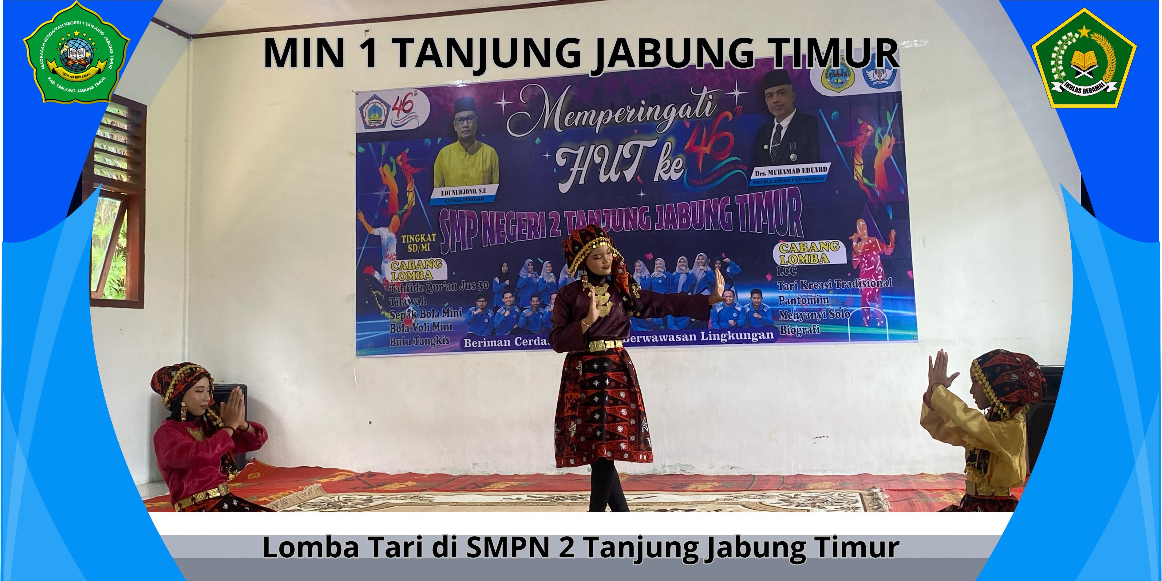 Rantau Rasau,MIN 1 Tanjab Timur - Tampil memukau, tim tari Madrasah Ibtidayah Negeri (MIN) 1 Tanjab Timur mencuri perhatian dewan juri serta penonton saat tampil pada perlombaan peringatan Hari Ulang Tahun (HUT) ke 46 Sekolah Menengah Pertama Negeri (SMPN) 2 Tanjab Timur pada Senin (14/4/2025).