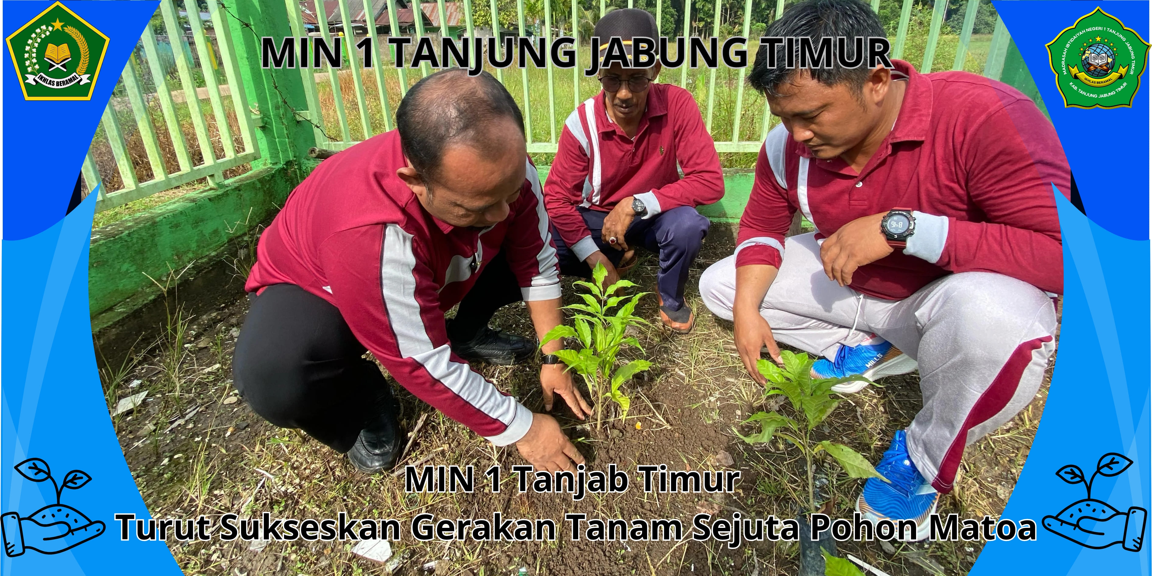 Guna turut menyukseskan program tersebut, Madrasah Ibtidayah Negeri (MIN) 1 Tanjab Timur juga turut menanam pohon matoa di sekitar madrasah.