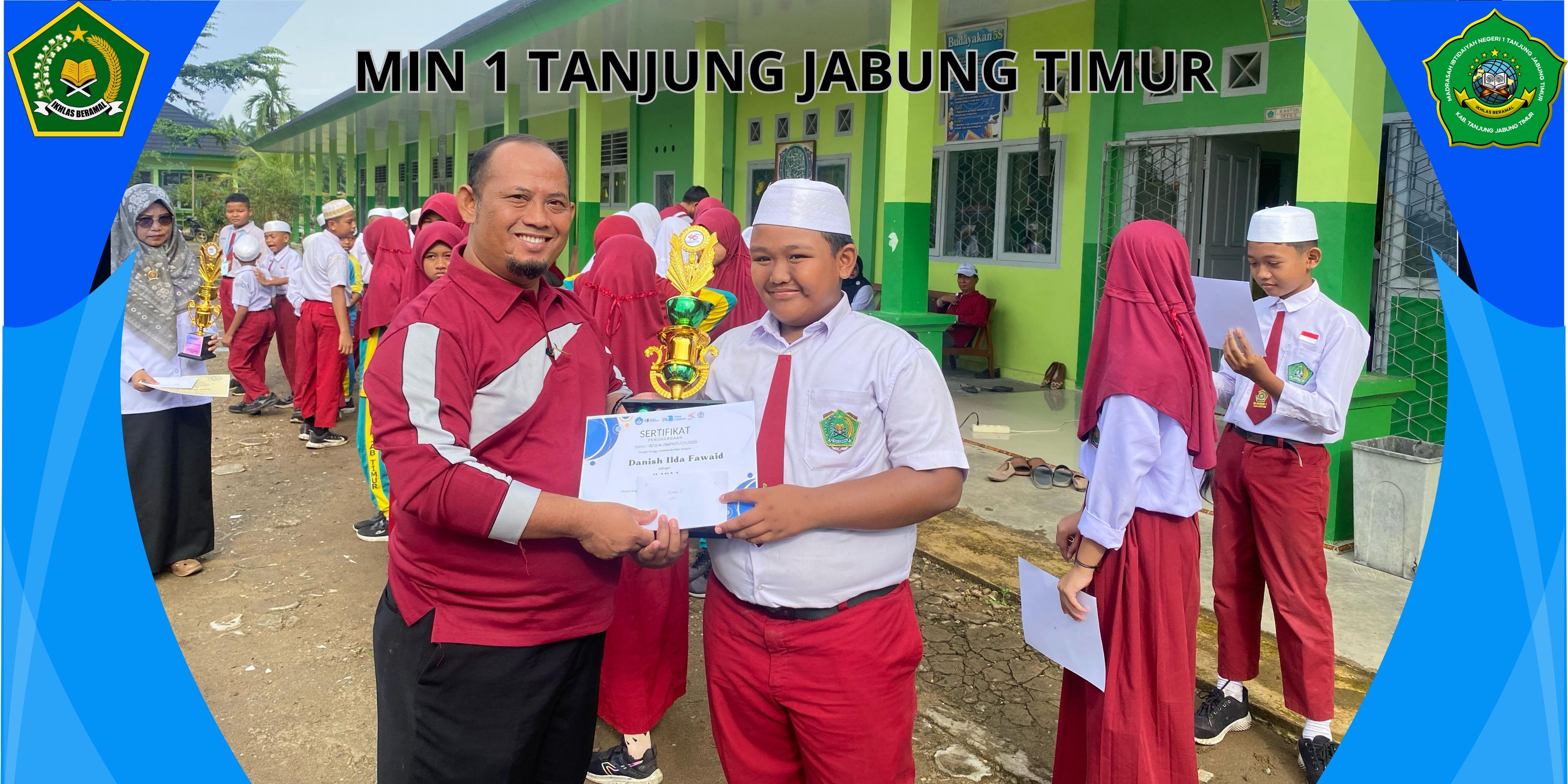 "Sekali lagi selamat kepada seluruh pemenang, bagi yang belum ayo terus berusaha dan yakinlah ini merupakan kemenangan yang tertunda. Dan percayalah kalian semua juaranya. Dan sekali lagi terima kasih sebab telah mengharumkan nama MIN 1 Tanjab Timur," tambahnya.