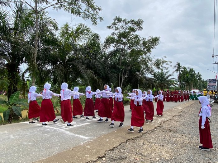 Rantau Rasau,MIN 1 Tanjab Timur - Madrasah Ibtidaiyah Negeri (MIN) 1 Tanjab Timur patut tersenyum bangga, mengapa tidak, dalam perLombaan Keterampilan Baris Berbaris (LKBB) yang diadakan Pemerintah Kecamatan Rantau Rasau dalam mempengiringati Hari Ulang Tahun (HUT) Republik Indonesia (RI) ke 80 yang dilaksanakan pada Kamis (14/8/2025) lalu menciptakan hattrick.