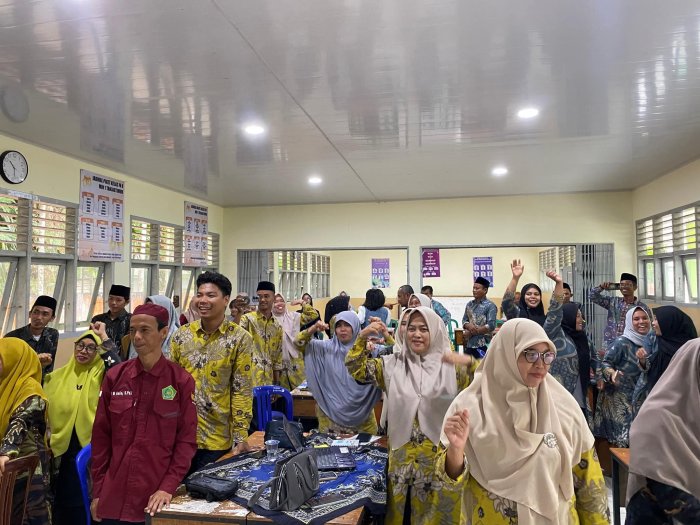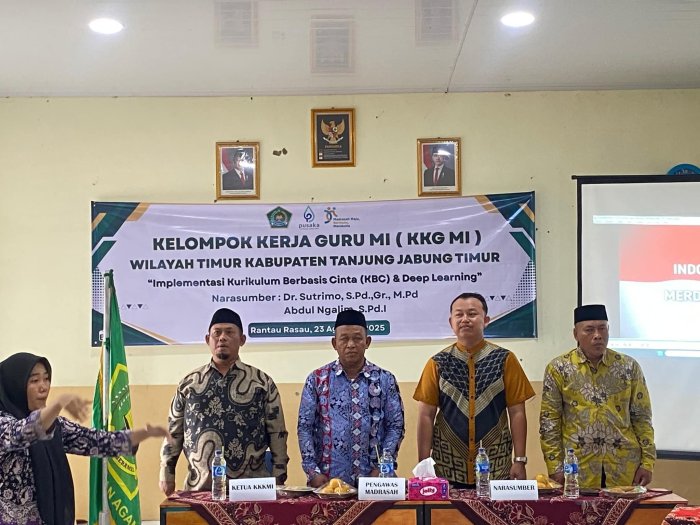 Rantau Rasau,MIN 1 Tanjab Timur - Seru dan mengasyikan itulah yang tertangkap saat majelis guru dari tujuh madrasah mengikuti workshop implementasi Kurikulum Berbasi Cinta (KBC) dan deep learning yang diadakan di Madrasah Ibtidaiyah Negeri (MIN) 1 Tanjab Timur, pada Sabtu (23/8/2025) kemarin. Kenapa tidak, pada pelatihan tersebut majelis guru diajak berdiskusi dan diberi wawasan langsung dari sang ahli, dimana diharapkan mereka dapat mengimplementasikan hasil workshop tersebut dilelas masing masing.