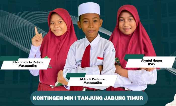 Rantau Rasau, MIN 1 Tanjab Timur - Kabar membanggakan untuk keluarga besar Madrasah Ibtidaiyah Negeri (MIN) 1 Tanjab Timur. Kenapa tidak, tiga orang siswa siswi nya bakal melaju ke Olimpiade Madrasah Indonesia (OMI) tingkat Provinsi Jambi.