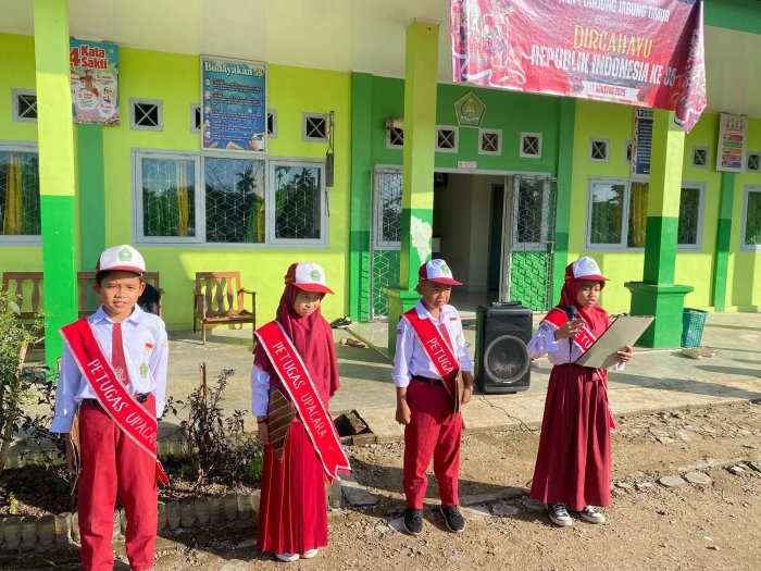 Untuk diketahui pada hari itu (Senin,22 September 2025-red) tampil sebagai petugas upacara siswa siswi kelas V A.