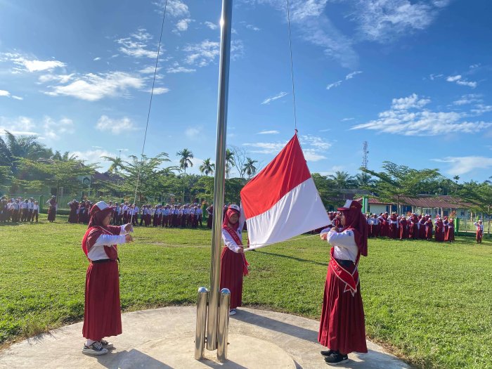 Rantau Rasau,MIN 1 Tanjab Timur - Panas terik di Senin (22/9/2025) pagi, tak mengurungkan niat siswa siswi Madrasah Intidaiyah Negeri (MIN) 1 Tanjab Timur untuk berbaris dilapangan guna melaksanakan upacara bendera.