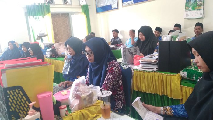 Rantau Rasau, MIN 1 Tanjab Timur - Bertempat di ruang guru, Rabu (1/10/2025) siang, Majelis Guru Madrasah Ibtidaiyah Negeri (MIN) 1 Tanjab Timur menggelar rapat bulanan. Dimana rapat rutin ini merupakan salah satu cara untuk memecahkan kendala guna memajukan MIN 1 Tanjab Timur.