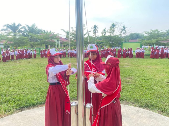Rantau Rasau, MIN 1 Tanjab Timur – Upacara bendera yang rutin dilaksanakan setiap hari Senin di Madrasah Ibtidaiyah Negeri (MIN) 1 Tanjab Timur kembali digelar pada Senin, 6 Oktober 2025. Pada kesempatan tersebut, Pembina Upacara Rina Raoudatul Jannah, S.Pd.I, menyampaikan pesan penting kepada seluruh siswa dan siswi mengenai pentingnya meningkatkan disiplin di lingkungan madrasah.