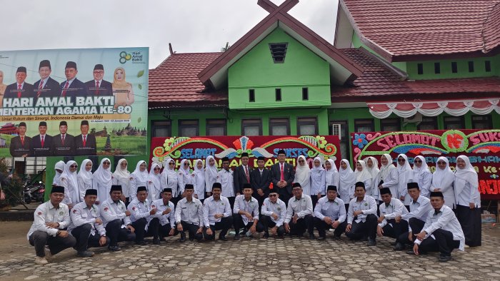 MUARA SABAK, MIN 1 Tanjab Timur -Suasana khidmat menyelimuti lapangan upacara dalam rangka memperingati Hari Amal Bakti (HAB) Kementerian Agama Republik Indonesia ke-80 pada Sabtu (3/1/2026). Di tengah barisan peserta, tampak kehadiran solid dari Majelis Guru MIN 1 Tanjung Jabung Timur yang turut menyemarakkan perhelatan akbar tahunan tersebut.