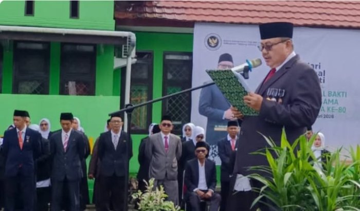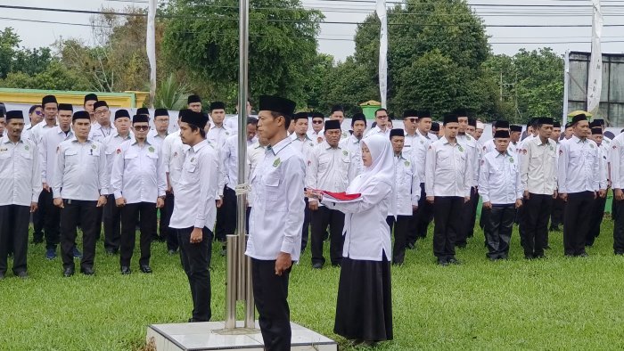 Dengan mengenakan seragam resmi yang rapi, para pendidik dari MIN 1 Tanjab Timur ini mengikuti setiap prosesi upacara dengan penuh disiplin, mulai dari pengibaran bendera hingga pembacaan doa syukur atas usia Kemenag yang kini genap delapan dekade.