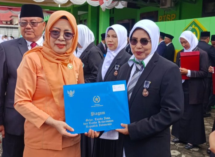 MUARA SABAK,MIN 1 Tanjab Timud– Momen peringatan Hari Amal Bhakti (HAB) Kementerian Agama ke-80 tahun 2026 menjadi hari yang bersejarah bagi keluarga besar Madrasah Ibtidaiyah Negeri (MIN) 1 Tanjab Timur. Kenapa tidak, sebanyak 13 orang guru di madrasah tersebut resmi menerima penganugerahan Tanda Kehormatan Satyalancana Karya Satya dari Presiden Republik Indonesia.