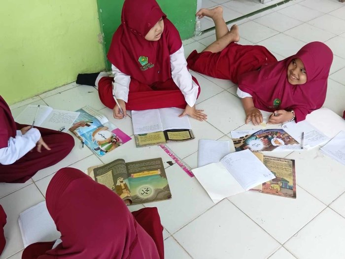 Wali Kelas III A, Maman Suriaman,S.Pd sengaja memindahkan kegiatan belajar mengajar dari ruang kelas ke perpustakaan. Menurutnya, perubahan suasana sangat penting untuk memicu rasa ingin tahu anak-anak pada usia dasar.