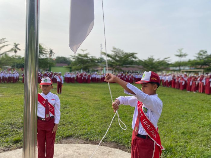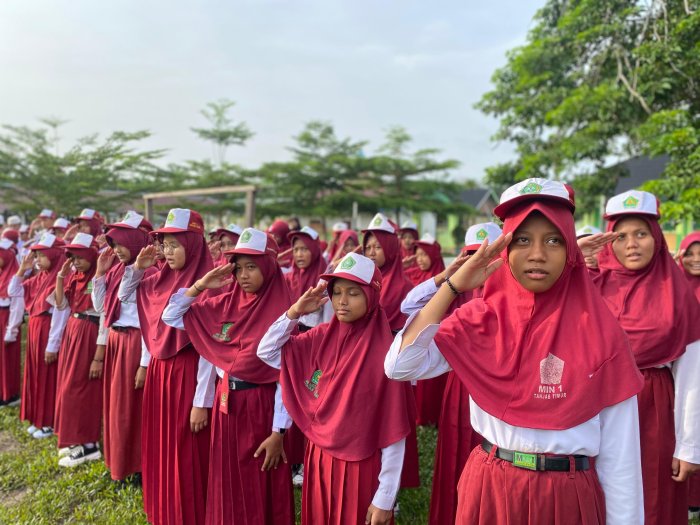 Rantau Rasau, MIN 1 Tanjab Timur - Semangat kekeluargaan dan kedisiplinan menyelimuti lingkungan Madrasah Ibtidaiyah Negeri (MIN) 1 Tanjab Timur pada Senin (19/1/2026) pagi.� Ini merupakan upacara perdana pada awal semester ini, sebab sebelumnya lapangan upacara terendam banjir dan hujan ferus mengguyur Kecamatan Rantau Rasau dan sekitarnya.