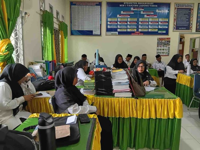 Rantau Rasau,MIN 1 Tanjab Timur - Menjelang pelaksanaan Tes Kemampuan Akademik (TKA) tahun ajaran 2025/2026, jajaran pendidik dan tenaga kependidikan Madrasah Ibtidaiyah Negeri (MIN) 1 Tanjab Timur, Senin (20/4/2026) sore menggelar rapat koordinasi intensif.